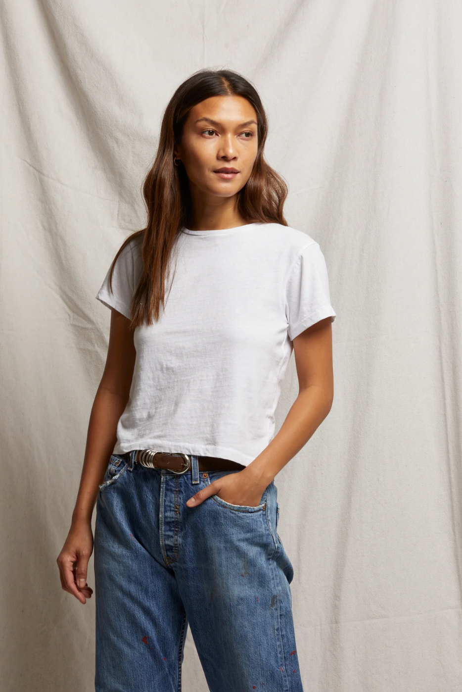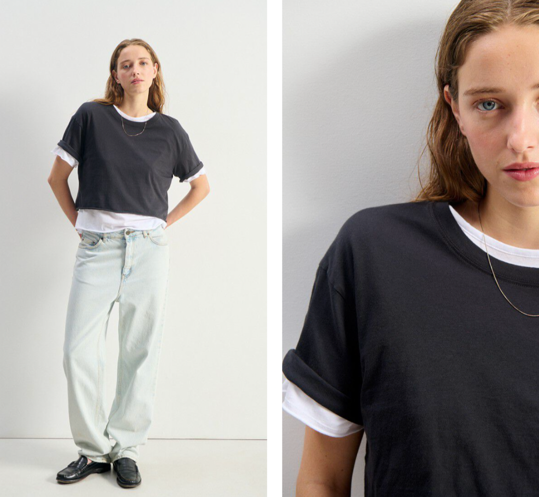 you asked, and we listened. lisa is based on our best-selling springsteen tee but made in soft, luxurious recycled cotton. the neckline is slightly smaller to give it a relaxed and easy fit.
