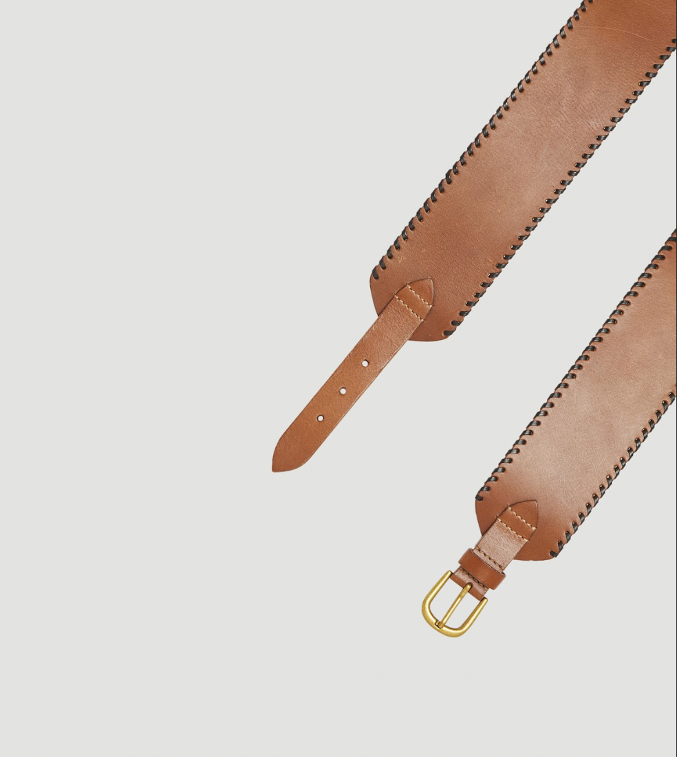 This wide cowhide leather belt is designed to wear on the waist, and can be adjusted to fit perfectly to your curves. The antiqued bronze buckles and leather laces add character to the piece, while it's meticulous finishing touches create an heirloom feel. A lesson in understated elegance, perfect to add structure to a dress or to give a stylish finish to any look.